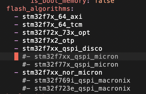 <@willeml:matrix.org> nvm, its the `STM32F730V8Tx` (which is also there) so I just remove all entries except that one? and then choose one flash algo?